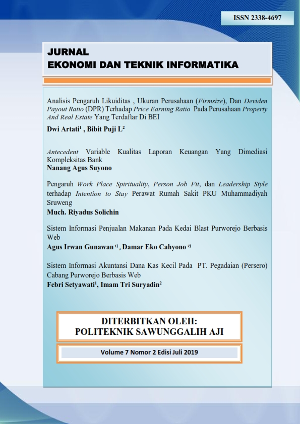 Vol 7 No 2 (2019): Jurnal Ekonomi Dan Teknik Informatika Vol. 7 No 2 2019